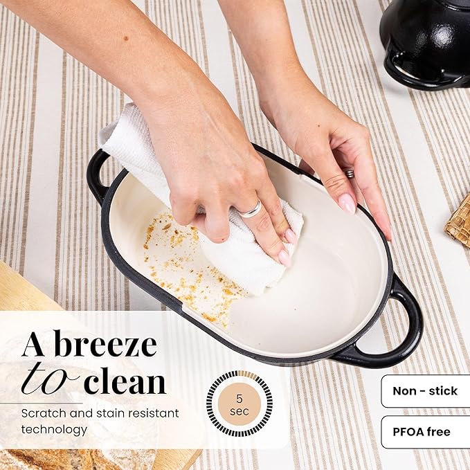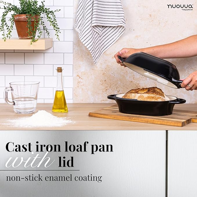 • DURABLE TRIPLE-LAYER ENAMEL: This enamelled cast iron bread loaf pan by Nuovva is constructed with a reinforced 3-layer enamel coating for extraordinary stability. 16cm x 24cm without handles and 31cm with handles, the chip-resistant finish ensures consistent use for years, ideal for everyday baking. Perfect for those who want long-term performance in their kitchen!