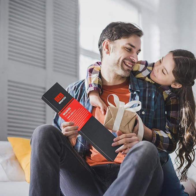 • Luxury Gift Box: Packaged in a sleek gift box with shockproof foam and a leather sheath, this Japanese kitchen knife is the perfect birthday gift for women & men. Includes a care guide for sharpening and storage. Ideal for weddings, Christmas, or anniversaries