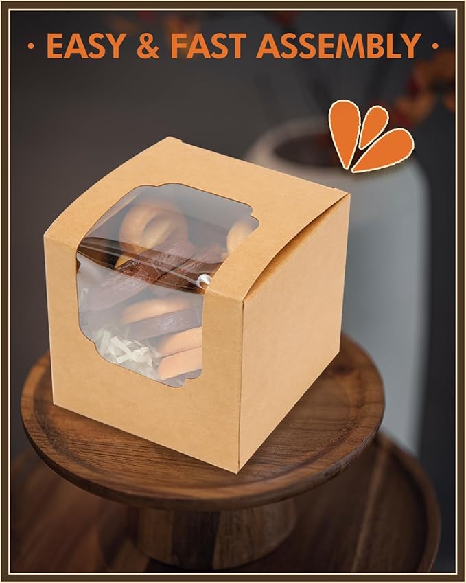 Bakepacker Auto-pop up Cupcake Boxes 30-Packs Individual Cupcake Container Brown 3.5" x 3.5" x 3.5" Single Cupcake Boxes