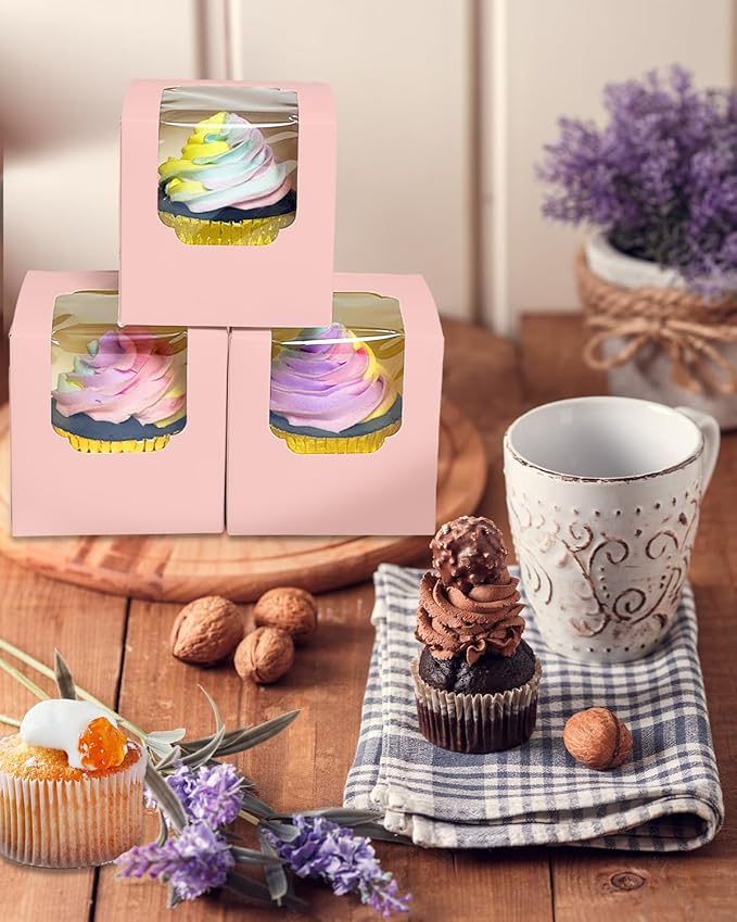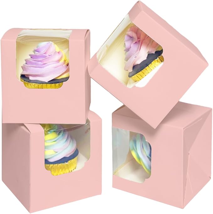 Bakepacker Auto-pop up Cupcake Boxes 30-Packs Individual Cupcake Container Pink 3.5" x 3.5" x 3.5" Single Cupcake Boxes