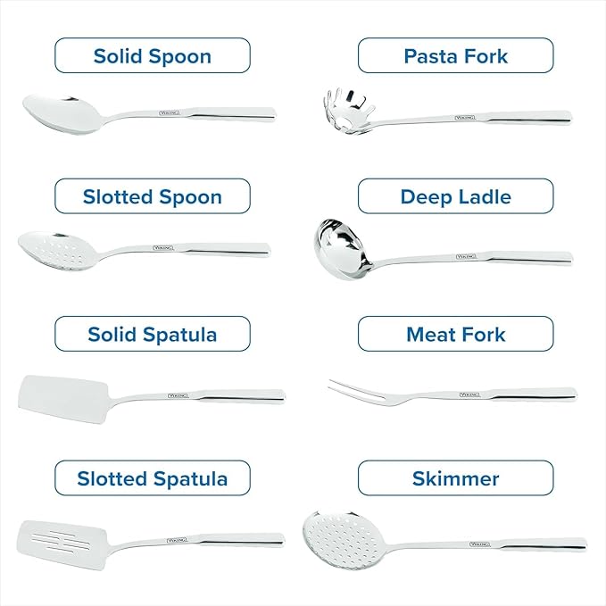 • ALL-IN-ONE COOKWARE SET: This exclusive Viking virtual bundle includes four essential kitchen tools: a 10-inch nonstick frying pan, 2.4-quart saucepan with glass lid, 8-quart stock pot with lid, and a 6-piece stainless steel utensil set—perfect for preparing everyday meals or tackling gourmet recipes with professional quality.