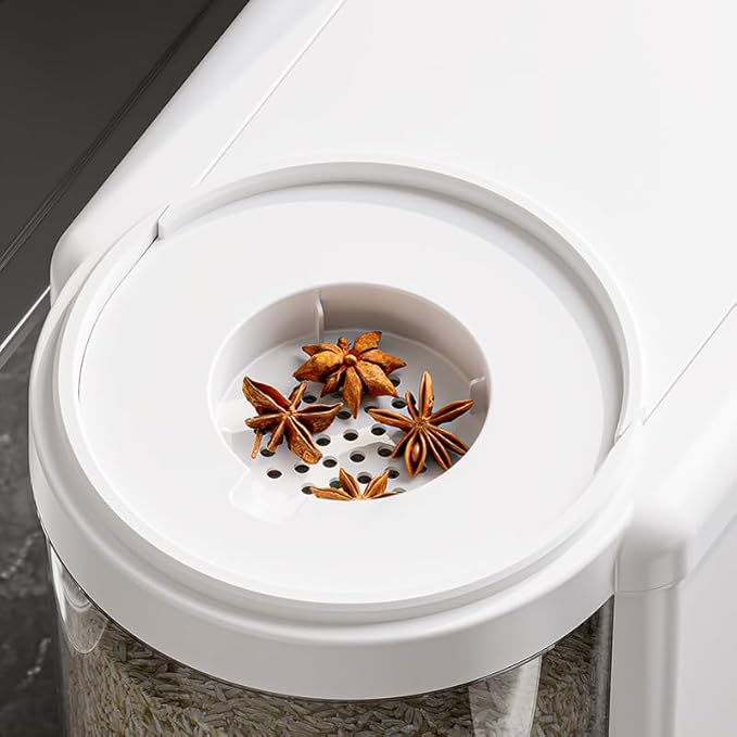 • Large capacity: This rice storage container can hold 22-25 pounds (11.5 kilograms) of rice, allowing you to store more rice for a long time and maintain hygiene. It can not only store rice, but also other grains. Due to differences in particle size and density, the weight of grains stored in the same volume may vary. Rice dispensers can generally be used for millet and soybeans, but cannot be used for flour, large dog food, and other foods.