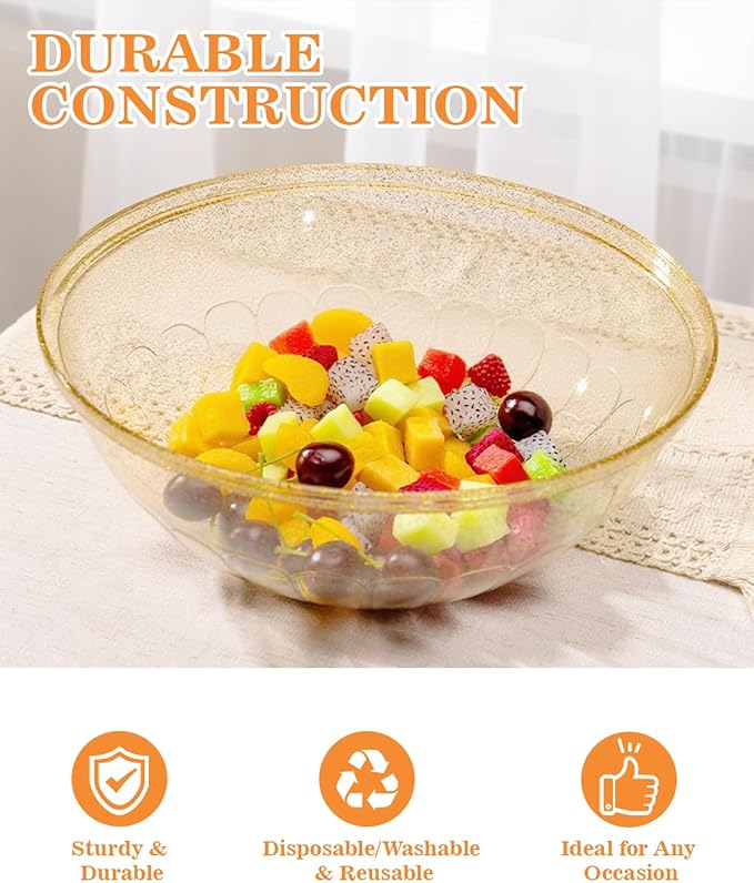 • Easy-Cleanup: These plastic serving bowls offer great versatility—easy disposal or reuse. They are 100% reusable and can be hand-washed for multiple uses. As a plastic salad bowl, the smooth non-porous surface resists stains and clean effortlessly
