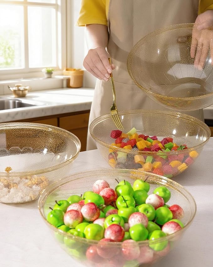 BESTVIP 150oz Glitter Gold Plastic Serving Bowls for Party, 4 Pack 11.6inch Large Disposable Chips Bowl for Salad, Snacks, Candy Dishes for Parties, Christmas, Weddings & Holidays, Events, Reusable