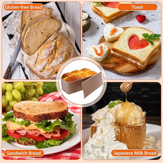 • CHEF-APPROVED DEMENSION&VERSATILITY – The 13"x4" baking surface accommodates 2.2lb dough batches effortlessly. As a premium bread loaf pan, it offers dual-mode functionality: Use the airtight lid for perfectly square sandwich bread loaf pan creations or remove it for artisan-style baking. Perfect for everything from rustic homemade bread to professional patisserie.