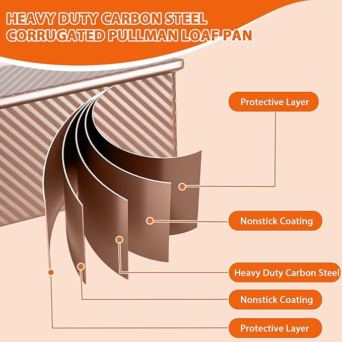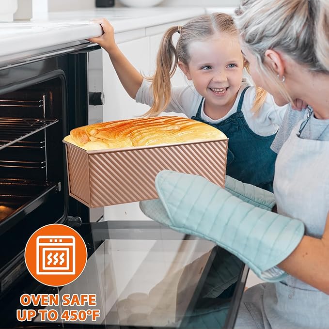 • DUARABLE&EASY MAINTENANCE – Featuring food-safe nonstick coating (PFOA/PTFE/BPA Free), this carbon steel bread pan resists rust and stains. Hand-wash recommended for longevity - simply soak in warm soapy water for 10 mins. Includes silicone corner protectors to prevent coating damage during storage.