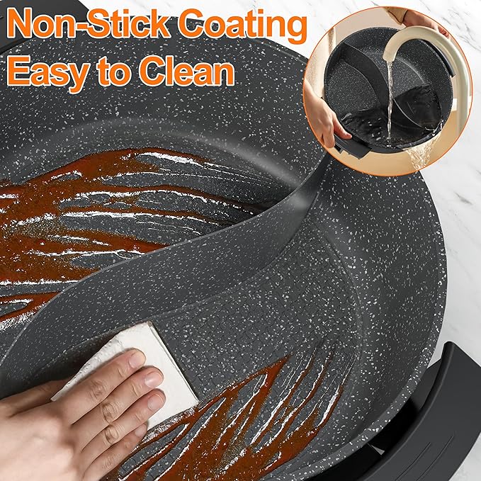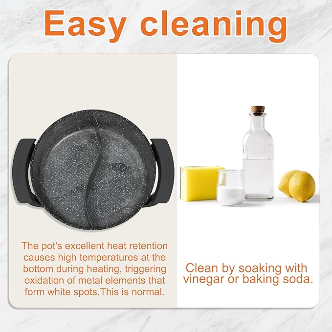 - [Non-Stick Electric Hot Pot with Even Heating] Enjoy hassle-free cooking with our PFOA-free nonstick pot that prevents food from sticking. The aluminum core ensures fast, even heating, perfect for hot pot broths, melted cheese fondues, or simmering stews—no more burnt spots or scorched food! Cleanup is a breeze—just wipe and go!