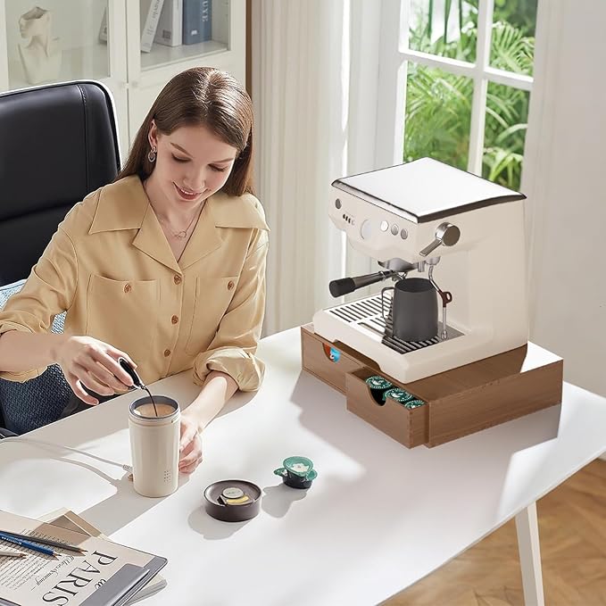 • Smart Dual-Drawer Layout: Featuring two independent, smooth-glide drawers, this organizer offers dedicated compartments to neatly separate regular and decaf pods, various roast types, or coffee accessories like stirrers and filters—keeping your coffee station stylish, organized, and effortlessly accessible.