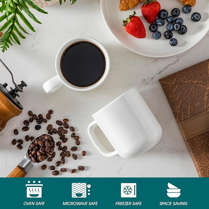• 【Warm Ivory Glaze for Cozy Elegance】: Unlike bright white mugs, our warm ivory hue adds cozy elegance to your coffee ritual. The natural ivory color comes from iron-rich clay, with no artificial whitening chemicals—making these white coffee mugs both stylish and safe.