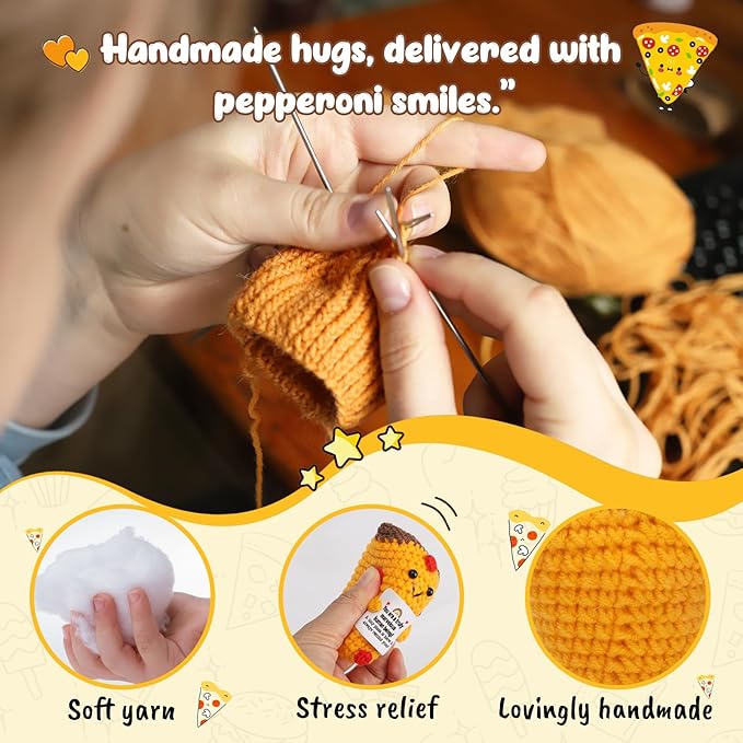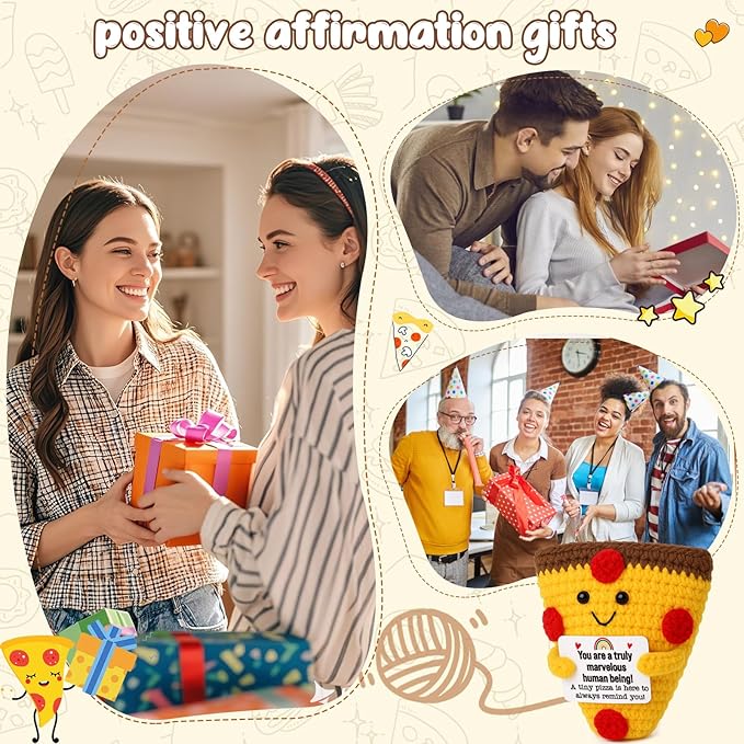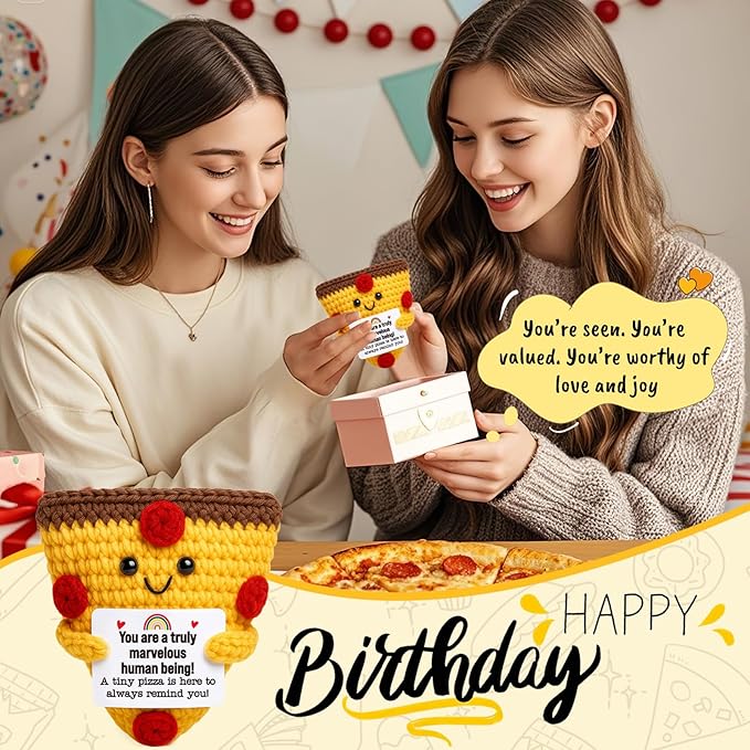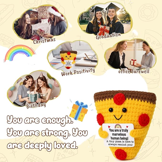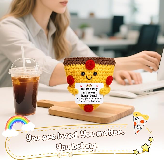 • 1. Emotional Cheer-Up & Holiday Support Gift This tiny crochet pizza brings a big dose of kindness and holiday cheer. Whether it’s for a rough day or the festive season, it’s the perfect emotional support Christmas gift that says: You’re truly marvelous—and always worth celebrating. A heartfelt stocking stuffer or Secret Santa surprise that spreads warmth and smiles.