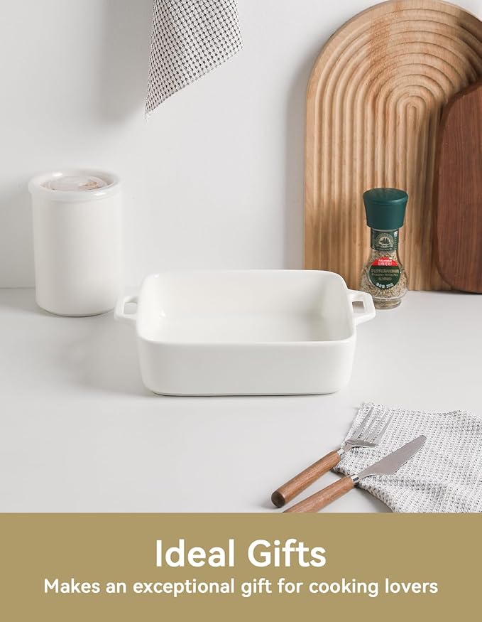 • A Perfect Bakeware Gift Choice: Looking for a thoughtful gift for a housewarming, wedding, birthdays, gatherings or any special occasion? Our ceramic baking dishes are an excellent choice. Their elegant design, smooth glaze surface,and bright color, combined with their functionality, makes them a practical and stylish addition to any kitchen. Surprise your guests with this casserole dish set and let them enjoy the joys of baking and cooking in style.