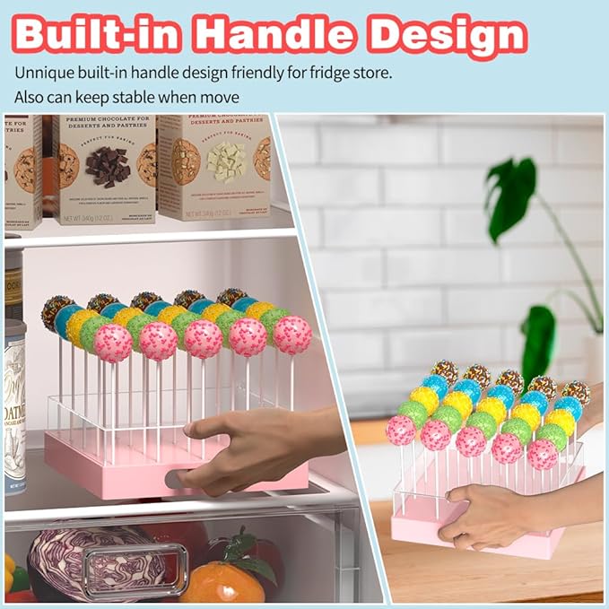 • Built-in Handle Design--Exclusive built-in handle design and sealed hole allows for movement after placing candies on the cake pop display no worry passing through