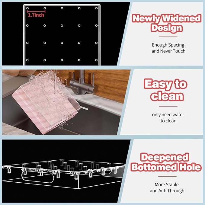 • Size and Capacity--The ultra large size(7.5*7.5*2.5")with 25 hole ,suitable to sticks diameter less than 0.14",has 1.7" gap between hole prevent touching when used