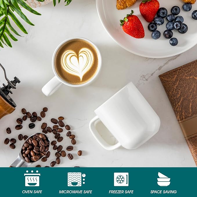 • 【Warm Ivory Glaze for Cozy Elegance】: Unlike bright white mugs, our warm ivory hue adds cozy elegance to your coffee ritual. The natural ivory color comes from iron-rich clay, with no artificial whitening chemicals—making these white coffee mugs both stylish and safe.