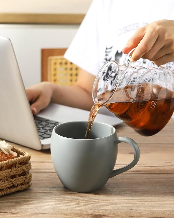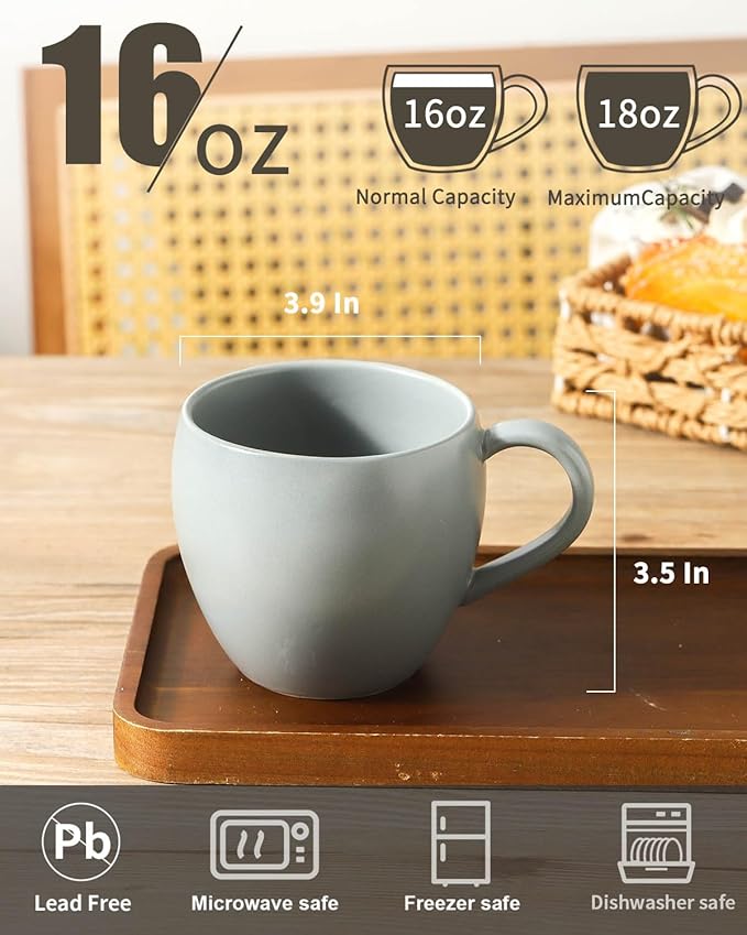• Perfect Capacity & Comfortable Grip: Each Tikooere ceramic mug holds a generous 16 oz—perfect for enjoying freshly brewed coffee, herbal tea, hot chocolate, milk, or even soups and desserts like oatmeal or custard. The large ergonomic handle offers a secure, balanced grip, making it a versatile go-to mug for home, office, or quiet evenings.