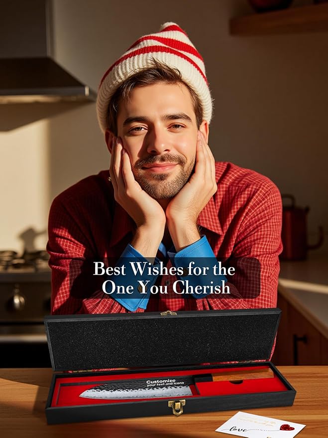 • 【Luxury Personalized Presentation】Presented in a premium sandalwood box with optional laser engraving, thoughtfully designed for commemorating milestones like Father’s Day, turning this Japanese kitchen knife into a cherished culinary heirloom.