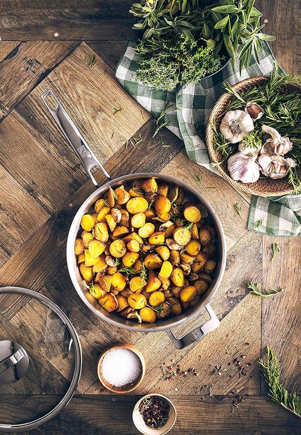 • SUITABLE FOR ALL COOKTOPS: Signature Cookware includes a 5.3 mm thick Triple Forged diffuser base, ensuring perfect heat distribution for faster cooking. It is compatible with all stovetops (Induction / Vitro / Electric / Gas) and Oven.