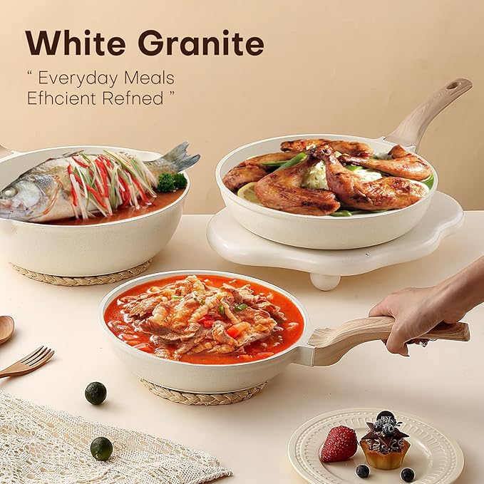 • Better cooking taste: These cookware set made of ceramic material, with good heat conduction, it can heat up quickly and evenly, allowing each dish to amplify the flavor of its own ingredients and achieve the best cooking effect. Suitable for stoves and induction cookers