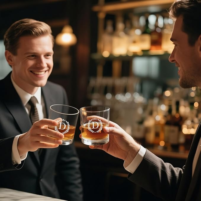 • 🎁 Custom Monogram Whiskey Glasses for Men: Turn every sip into something special with this whiskey glass. The perfect personalized gifts for men, him, dads, husbands, grandpas, son, friend or any whiskey lover who appreciates thoughtful details. Best Christmas birthday gifts for men.