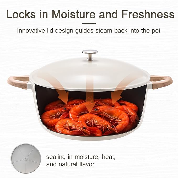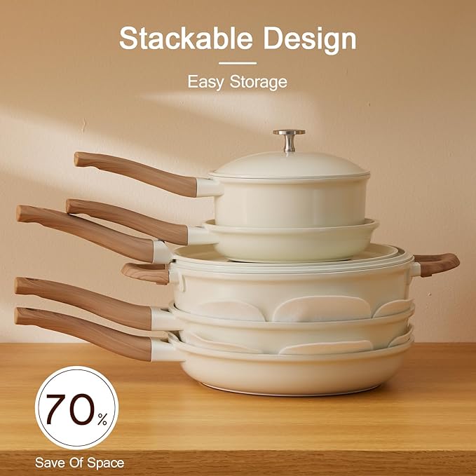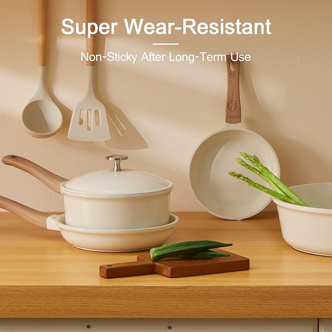 • 【Ti-Ceramic Coating Ultra Non-Stick & Non-Toxic】Engineered with a next-generation ceramic coating enhanced by titanium powder, this non toxic cookware set offers long-lasting nonstick performance and superior scratch resistance. 100% free from PFAS and other harmful chemicals—cook healthy with confidence