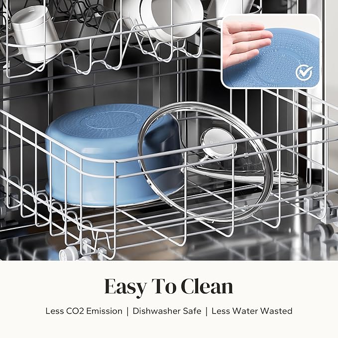 • OVEN & DISHWASHER SAFE UP TO 842°F:Stainless steel handles stay cool on all stovetops and withstand high oven heat, transforming these pots into versatile oven-to-table cookware. Dishwasher-safe for quick cleanup after cooking