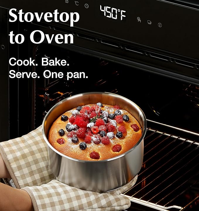 • Oven, Stovetop & Dishwasher Safe – Compatible with all cooktops, including induction. Oven safe up to 500°F (handle removed) and dishwasher-friendly, making cleanup quick and stress-free.