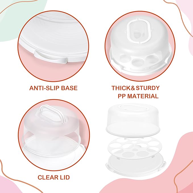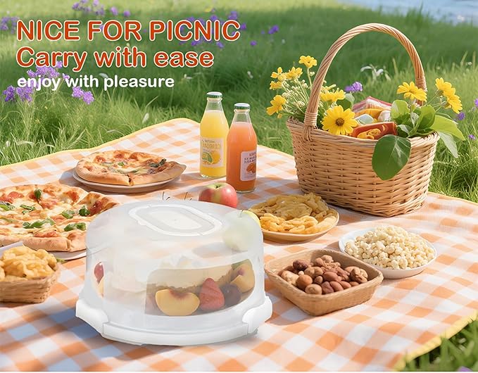 • [Easy to Carry],The anti-slip base attaches to the lid with 3 plastic snaps. to ensure the inside stuff will be airtight stored and won't drop off. the foldable portable handles to easy move your delicious cuisine. you can frost a cake right on the base without having to transfer.ideal for keeping baked goods at home,it also good for someone who brings baked goods to parties and picnic of family and friends.