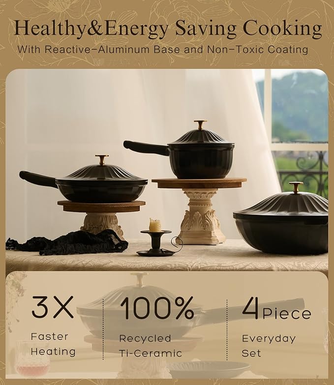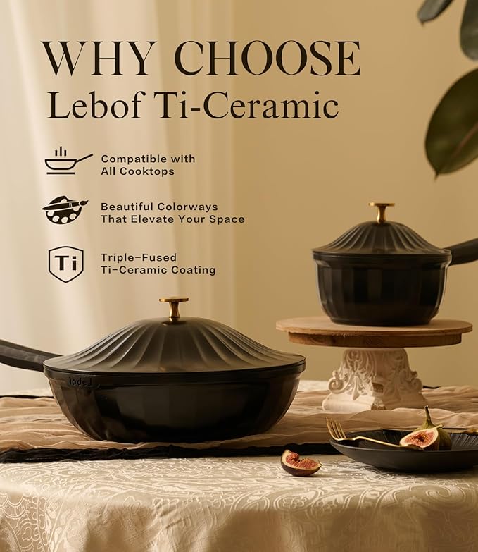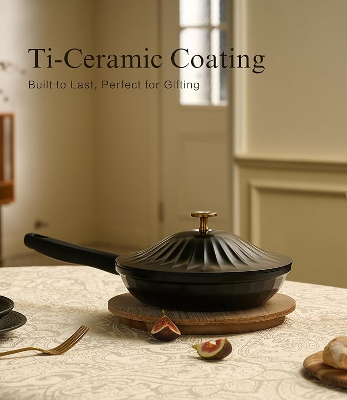 • Non Toxic Triple-Fused Ti-Ceramic Coating: Infused with titanium particles, the ceramic coating enhances durability with superior resistance to scratches, abrasion, heat, and corrosion. It extends the nonstick performance, improves chemical stability, and ensures safer, healthier cooking with every use
