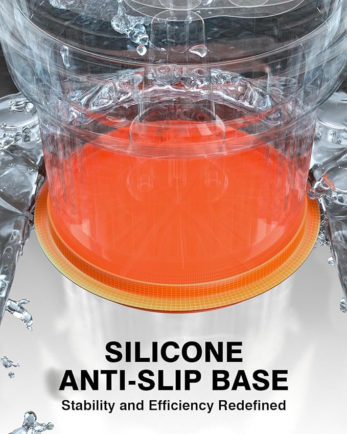 • ENHANCED STABILITY: Our commercial salad spinner features a newly designed bottom equipped with a silicone anti-slip mat. This innovative detail significantly reduces wobbling and enhances operational stability. Experience a more efficient drying process and a safer user experience with our salad spinner large capacity.