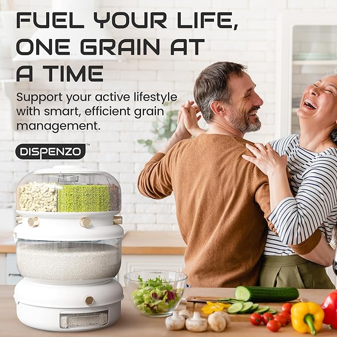 • ELIMINATE CONSTANT REFILLS and store more rice and grains in one go using the spacious rice keeper container. The grain dispenser rolls smoothly with its 360° wheels, letting you move it wherever you need during meal prep or cleanup