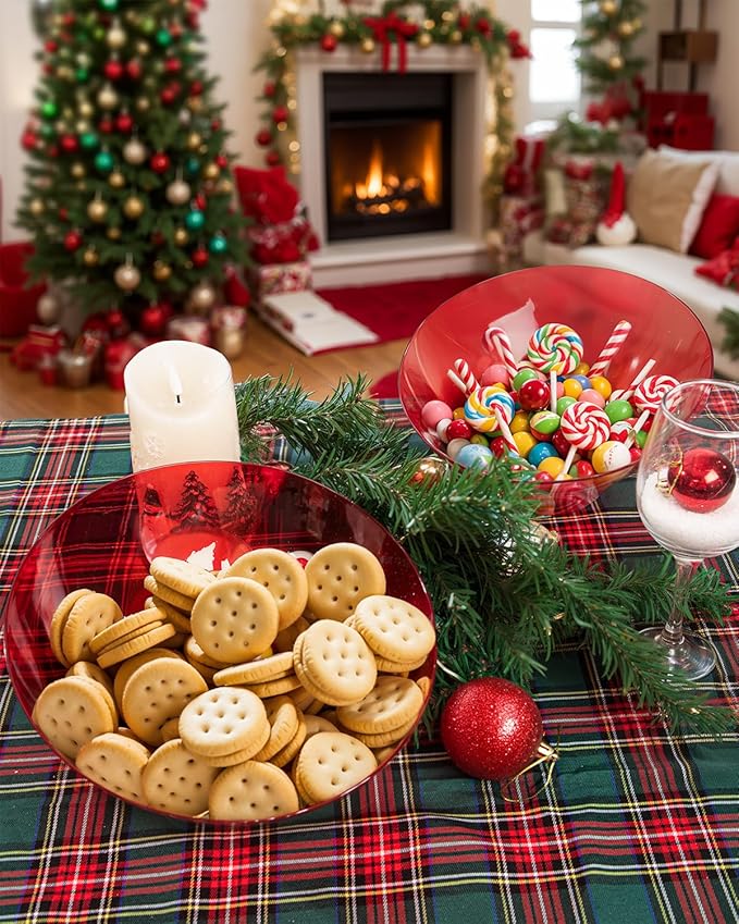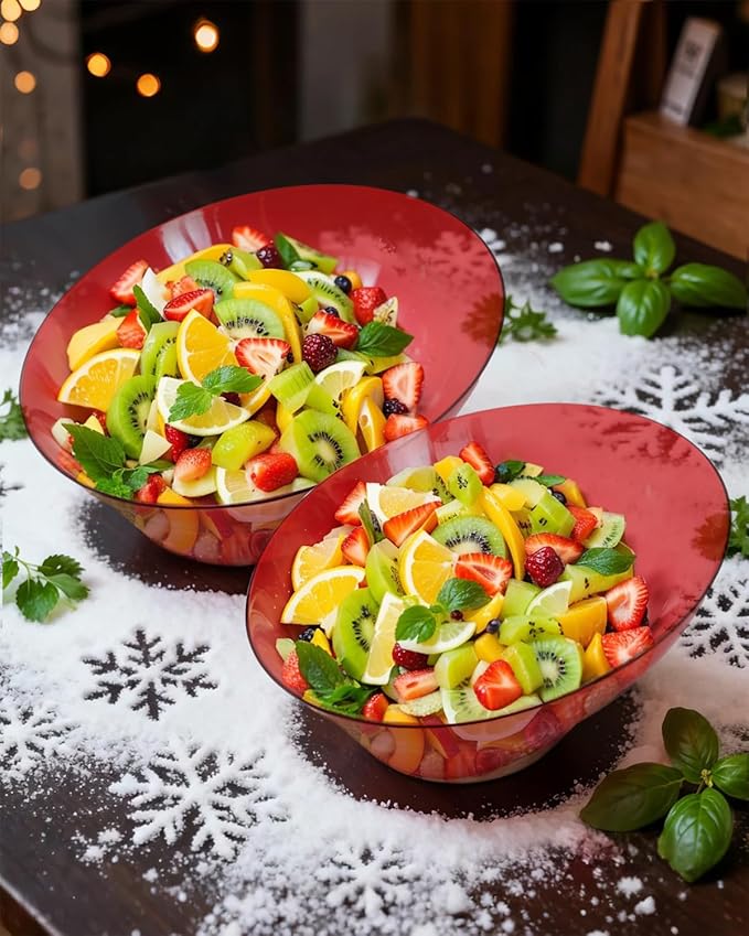 • Perfect for Festive Gatherings: These clear red plastic serving bowls are ideal for your Christmas parties and holiday events. Use them as Christmas serving bowls or party serving bowls to add a vibrant touch to your table settings while conveniently holding snacks, salads, or chips.