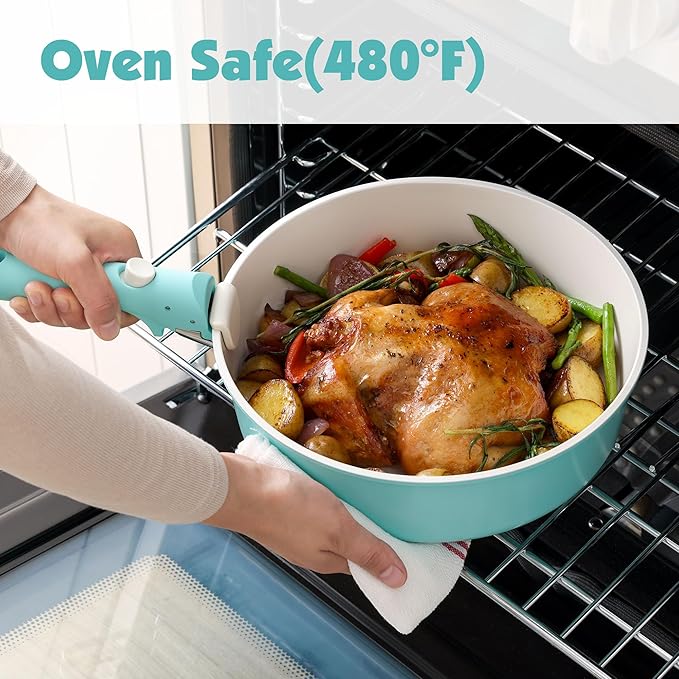 SENSARTE 24 Piece Ceramic Pots and Pans Set, Nonstick Detachable Handle Cookware, Induction Cookware Set with Removable Handle, Healthy Non Stick for RV, Dishwasher&Oven Safe, PFOA Free (Turquoise)