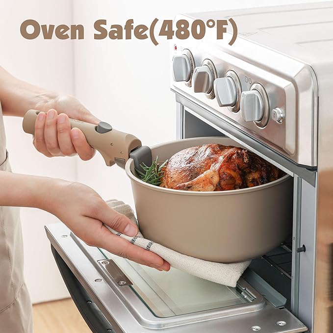 • Unique Removable Handle - Supports up to 22 pounds, the handle is professionally tested, fit for removable handle set pots and pans, no need to worry about wobbly handles.