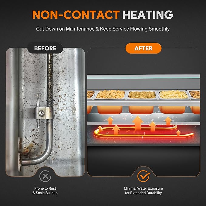 • Built for Demanding Use: Made with food-grade stainless steel, our food heating unit is tough enough for busy commercial kitchens, resists corrosion from daily use, and wipes clean effortlessly