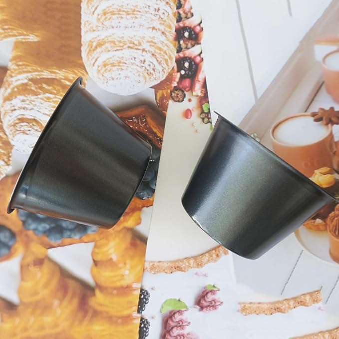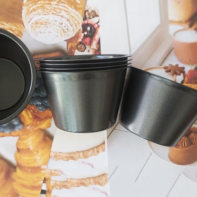 Popover Pans Nonstick 6 Packs, Individual Larger Muffin, Versatile Round Baking Cups for Popover, Muffins, Quiche, Tarts, Cupcakes, Pudding - Carbon Steel, Black