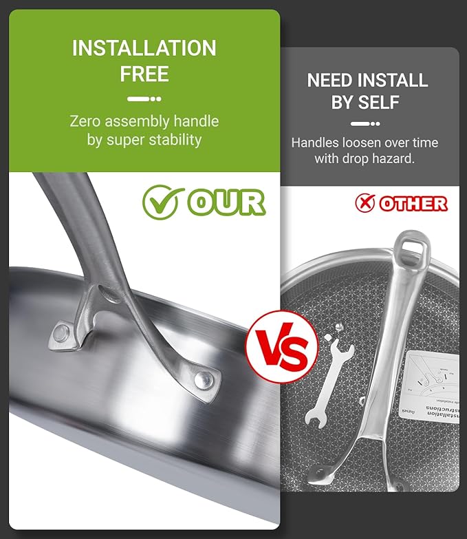 • DURABLE 304 STAINLESS STEEL CONSTRUCTION : Crafted from high-quality 304 STAINLESS STEEL, this cookware is rust-resistant, nickel-free, and built to withstand acidic ingredients without chemical leaching—ideal for long-term, everyday cooking.