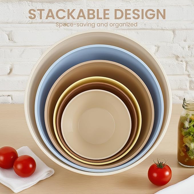• FOOD-GRADE SAFE: Our plastic mixing bowls set made from food-grade, BPA-free materials that are odor-free and safe. The nesting design allows for compact storage, keeping your kitchen tidy and organized