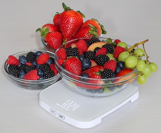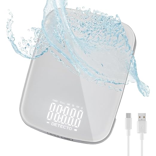 DETECTO Digital Kitchen Scale, Highly Accurate, Compact Glass Platform, Easy-to-Read Display, USB Rechargeable, 22 lb Capacity, Black/White (White)