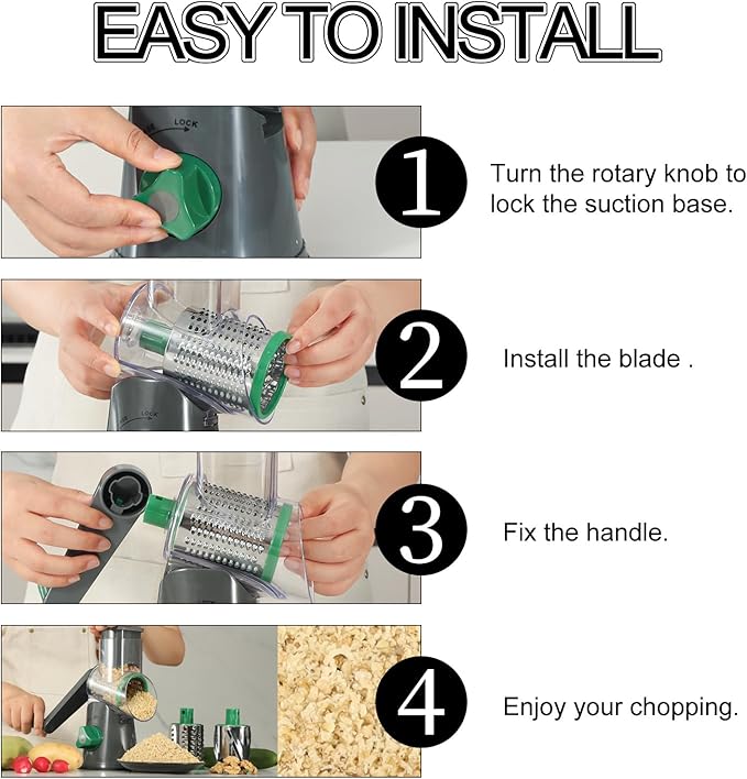 • The Ourokhome cheese grater facilitates food preparation with ease: Enjoy fresh cheese? Simply turn the crank handle a few times and obtain freshly shredded cheese. Utilize this kitchen grater to enhance your favorite recipes