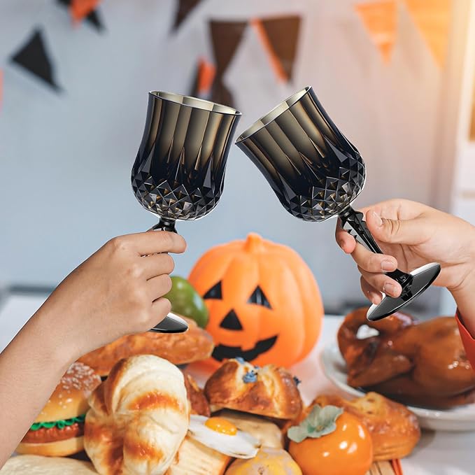 XUWAIDSGN 7oz Plastic Vintage Wine Glasses Drinking Glasses Unbreakable Wedding Glassware Crystal Water Goblets Reusable Drinkware Vintage Champagne Flutes (24, Black)