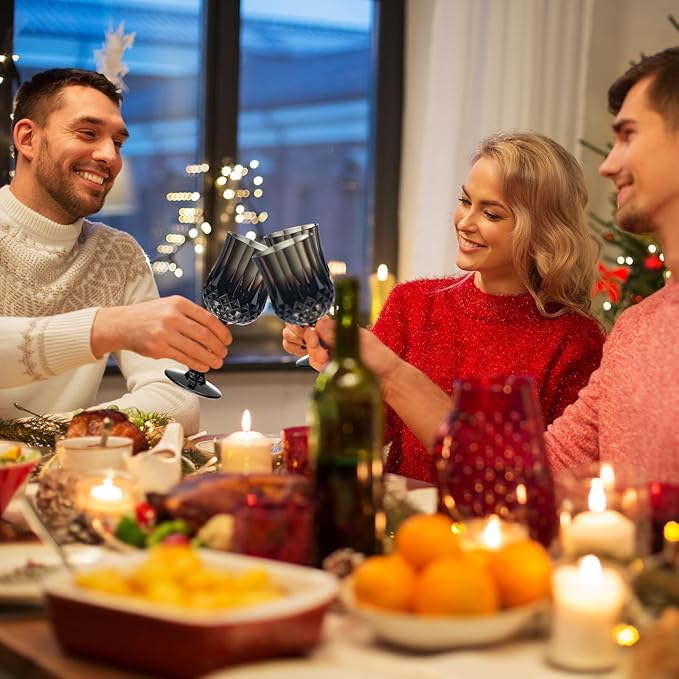 - Crystal texture and Vintage Design: The plastic wine glasses with a crystal texture , adds a touch of vintage charm without looking cheap. These plastic goblets adopt a stemmed design, easy for you to hold, full of enchantment and magic. It's attractive to see these wine glasses shining in the sunlight on your dining table.
