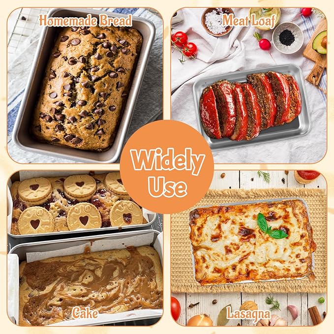 • Size & Package: Package includes 8 pack Bread Loaf Pan with inner dimensions of 8.5”x5.5”. Perfect size and capable of making multiple breads at the same time. Ideal for baking delicious homemade bread in the oven, likes sourdough bread, meatloaf, sandwiches, cakes, lasagna, and more.