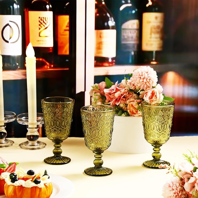 • Vintage Look: the vintage wine glasses drinking are designed with classic vintage colors, embossed patterns, adding elegance and vintage, romantic vibes to any special occasion; They will also be nice supplies for parties, weddings, anniversaries, holidays, Mother's Day and other fancy occasions