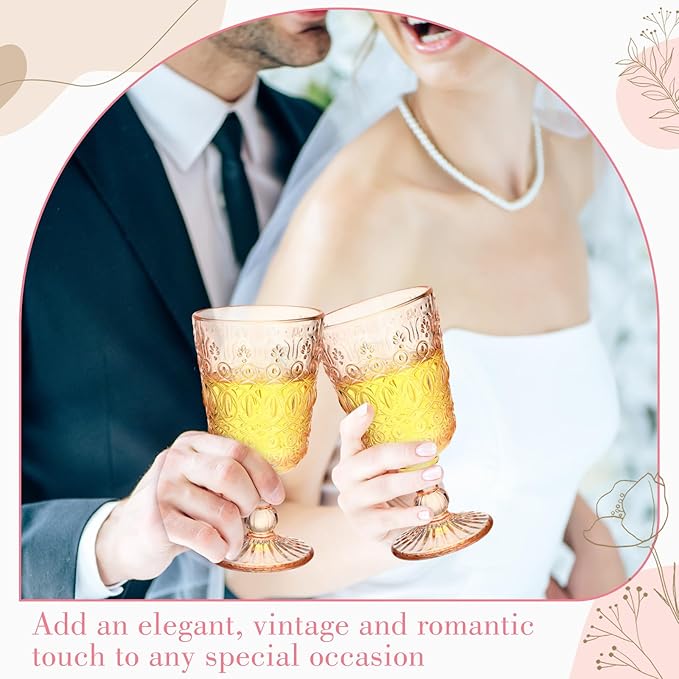 • Vintage Look: the vintage wine glasses drinking are designed with classic vintage colors, embossed patterns, adding elegance and vintage, romantic vibes to any special occasion; They will also be nice supplies for parties, weddings, anniversaries, holidays, Mother's Day and other fancy occasions