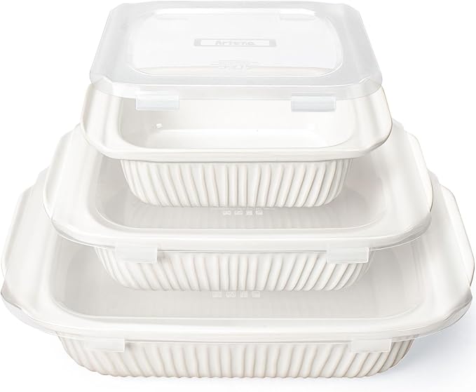 • Convenient Lid Made With Durable, Certified-safe PP for Storage - The included lids are designed to sit securely on the dishes for safe refrigerator storage and spill-resistant transport. While not airtight, they effectively protect food from dust and spills, making them perfect for covering leftovers briefly, taking dishes to a potluck, or stacking neatly in the fridge.