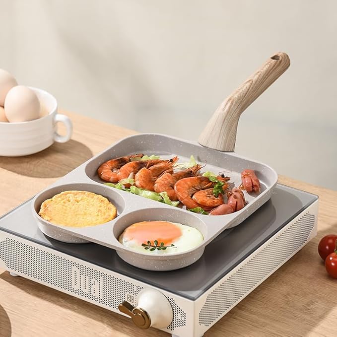 • The convenient non-stick egg pan consists of three independent sections, allowing you to cook three different foods simultaneously. This multi-functional pan simplifies the cooking process, eliminating the need for multiple pans, allowing you to prepare breakfast in one step while ensuring unique flavors.