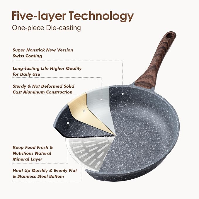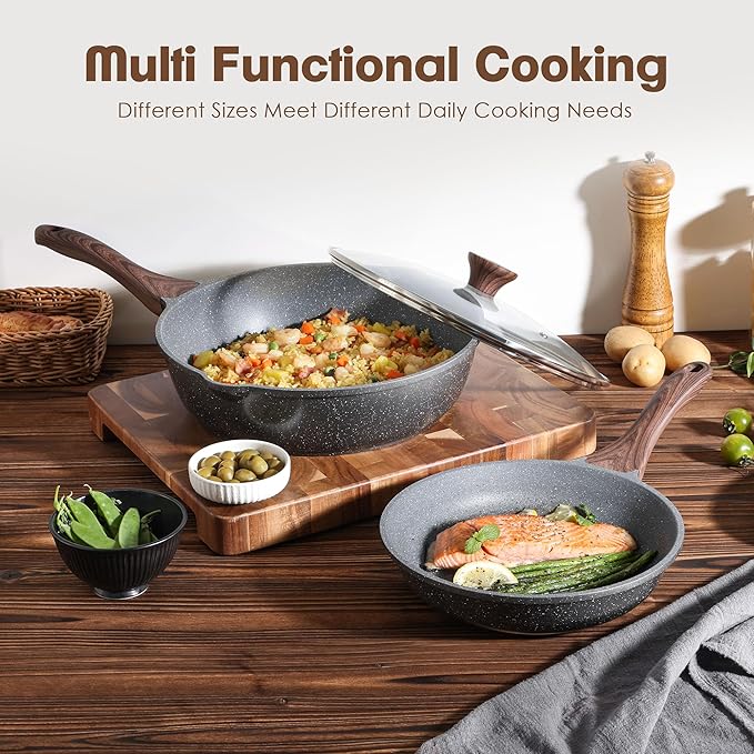• Pratical Gift:If you're seeking for a gift for your family or friends, our nonstick cookware set would be perfect for Mother's Day, Father's Day, Valentine's Day, Christmas, New Year, and house warming gifts new home, wedding gifts.
