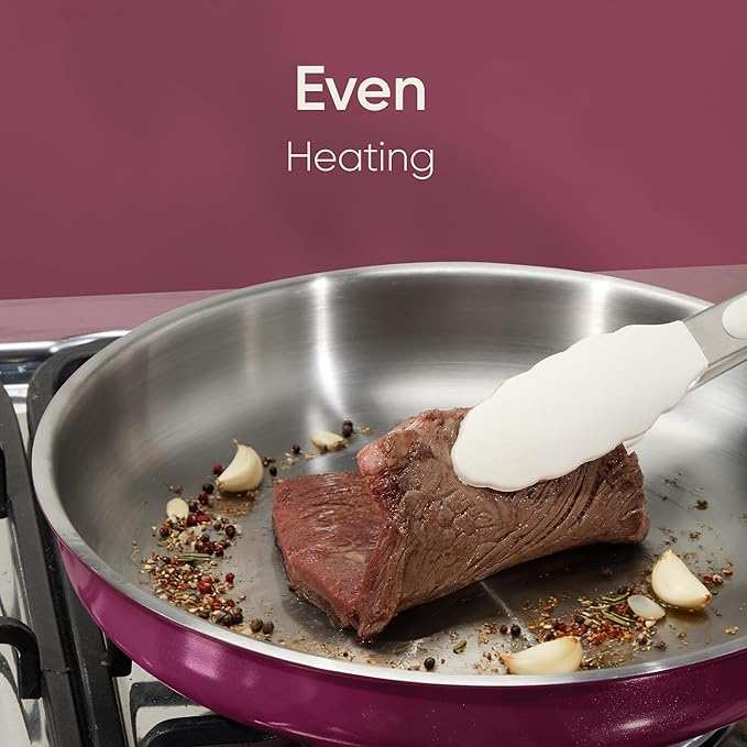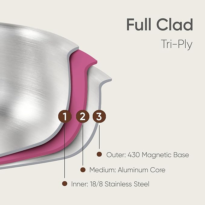 • 1. Premium Food-Grade Safety: PFAS/PFOA/PFOS-Free 18/8 stainless steel, non-toxic material certified for daily cooking. Full tri-ply clad construction prevents warping and hot spots. Your life-time-use cookware set.