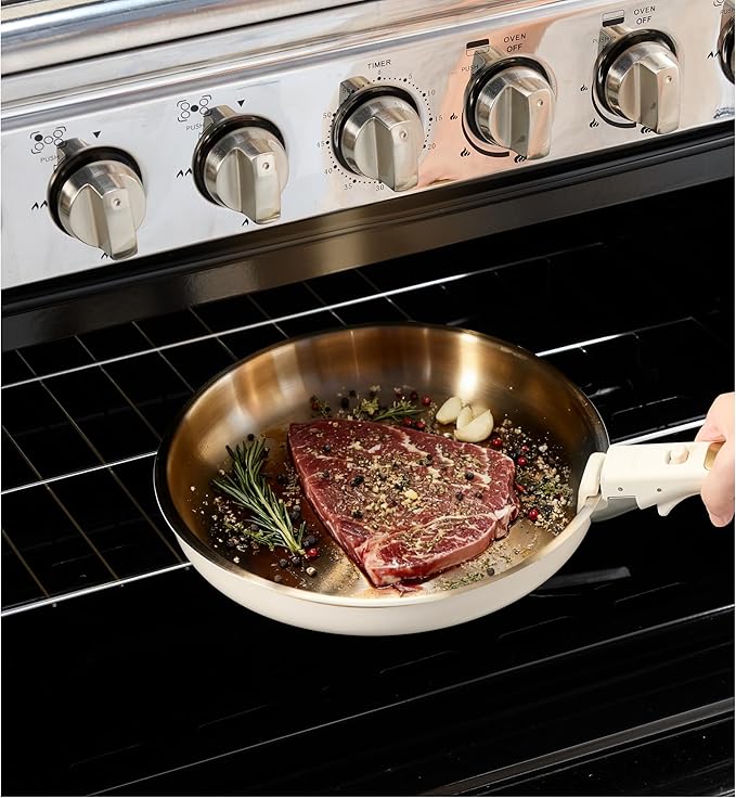 • 2. Oven-to-Table Versatility: Oven safe to 600°F (handles removed), seamlessly transition from stovetop to oven or fridge. Tri-ply base-to-rim ensures even heating for perfect roasts & bakes.