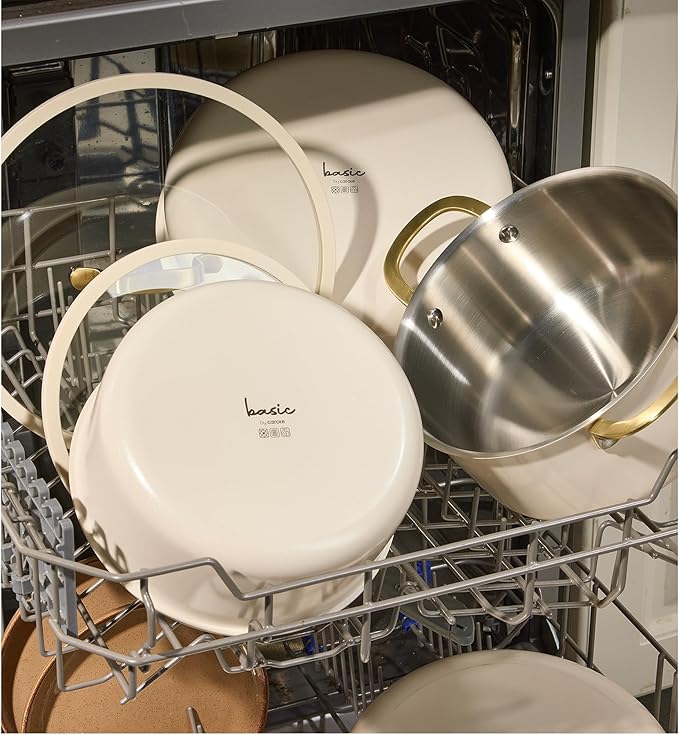 • 3. Dishwasher Safe & Effortless Cleaning: Outer ceramic layer resists stains and is dishwasher friendly. Rivet-free interior prevents food trapping for hassle-free maintenance.